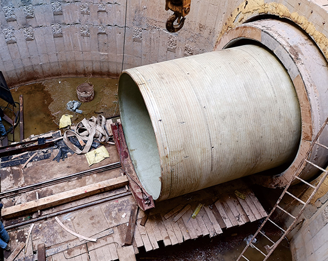 It has 6 production lines of glass fiber reinforced plastic sand-filled pipes (continuous winding process) at the international leading level, with an annual output of 60,000 tons of pipes