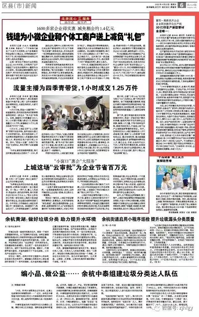 4月22日,杭州日報以“富陽一高新技術(shù)企業(yè) 自主研發(fā)數(shù)字化生產(chǎn)線”為題,報道我公司智能化、數(shù)字化、高端化的連續(xù)纏繞玻璃鋼夾砂管(簡稱CWFP)3D打印技術(shù)生產(chǎn)線。