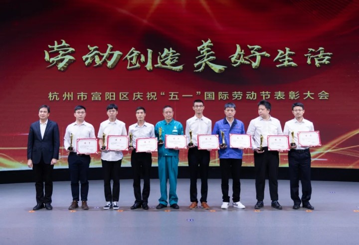 ?2022年4月29日,杭州市富陽區(qū)慶祝“五一”國際勞動節(jié)表彰大會在召開,公司徐崇玉研發(fā)團隊榮獲2021年度富陽區(qū)職工“突出貢獻獎”。